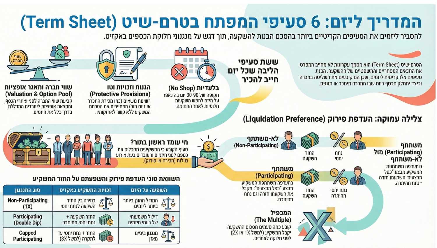 ההוראה הזו נולדה מתוך הגיון כלכלי ברור: משקיעים לוקחים סיכון משמעותי כשהם שופכים מיליונים לחברה צעירה, ולכן הם דורשים רשת ביטחון. אבל כשהתנאים אגרסיביים מדי, היזמים עלולים לגלות שגם באקזיט מוצלח — הם נותרים עם חלק זעום מהעוגה.